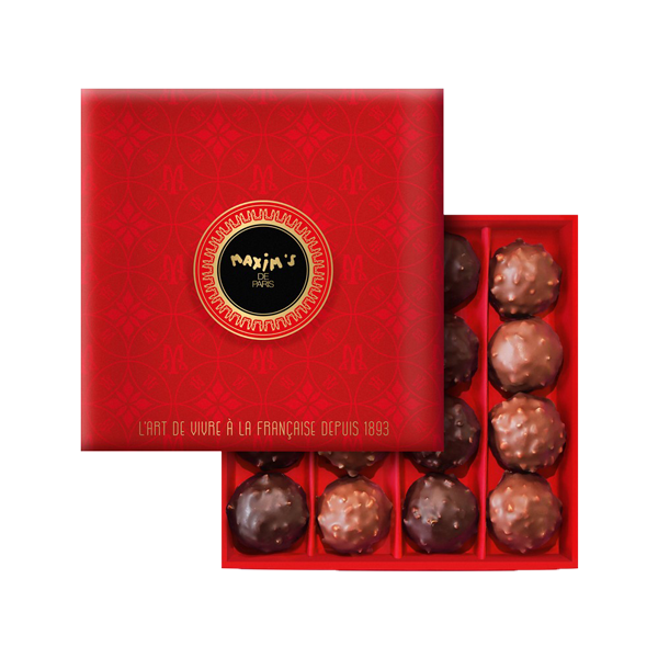 Boite de 16 rochers Maxim's au chocolat au lait et chocolat noir.