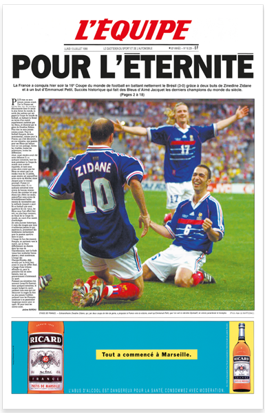 Impression de la Une du journal L'Equipe au format A3 (grammage 200g).