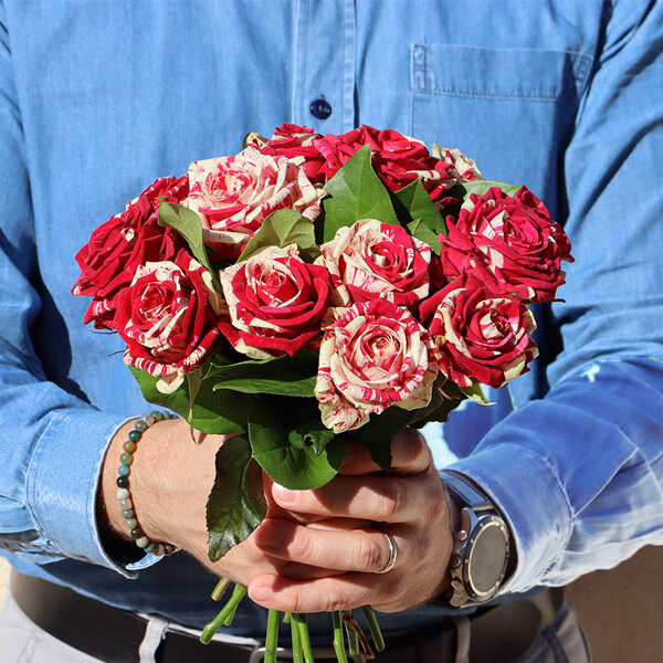 Notre bouquet de 15 roses arlequin est une véritable œuvre d'art florale, captivant le regard avec ses pétales d'un rouge framboise et d'un blanc immaculé. Cette combinaison de couleurs évoque la passion et la pureté, créant un contraste saisissant. Chaque rose raconte une histoire unique, mêlant l'amour ardent et l'innocence. Offrir ce bouquet, c'est offrir bien plus qu'un simple arrangement floral, c'est exprimer des sentiments profonds et sincères.