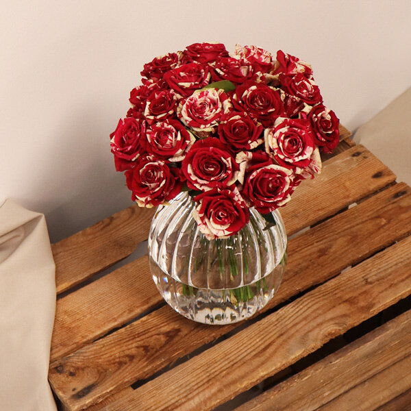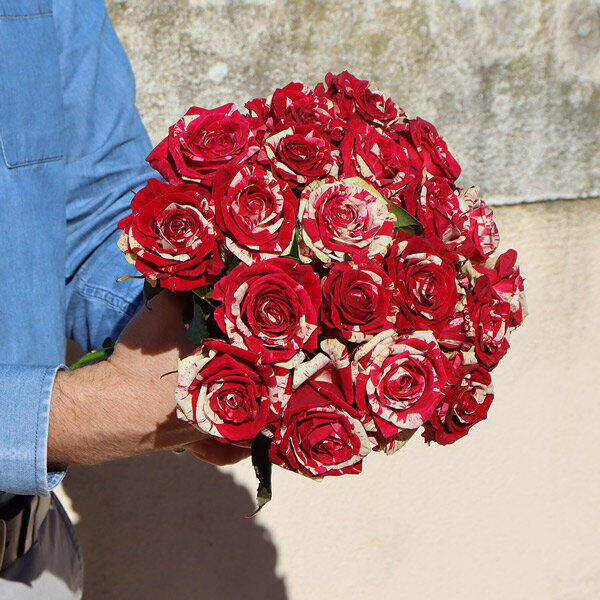 Découvrez la beauté saisissante de nos roses arlequin, où chaque pétale se pare de deux couleurs en harmonie. Le contraste entre le rouge framboise et le blanc crée une véritable symphonie visuelle, évoquant passion et pureté dans un seul bouquet. Chacune de ces roses est une œuvre d'art florale unique, parfaite pour exprimer des sentiments profonds et partager des émotions sincères.