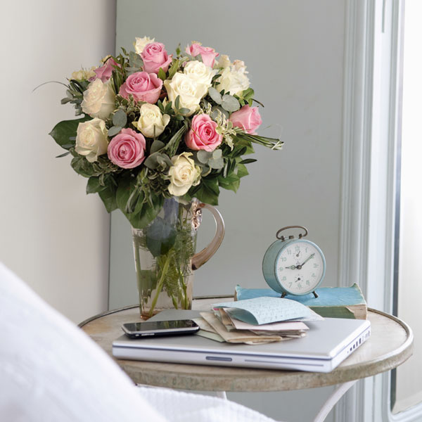 Cette féminine composition à la subtile élégance séduit par son côté tendre et naïf. Parfaite messagère, cette brassée de roses se suffit à elle-même pour transmettre vos sentiments les plus purs. Ce joli bouquet est une invitation au partage et à la tendresse.