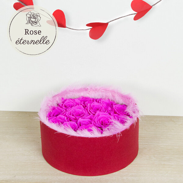 Les roses, fleurs de l'amour, viennent se nicher dans leur écrin. Une harmonie de douceur vient se dessiner pour vous soumettre une idée de cadeau pour votre moitié. A l'image de la grandeur de vos plus beaux sentiments, notre rond de roses éternelles accompagnera le destinataire de votre coeur pour très longtemps. Une occasion de faire perdurer votre amour pour de nombreuses années.
