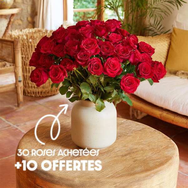Bouquet de 30 roses rouges + 10 roses rouges offertes.