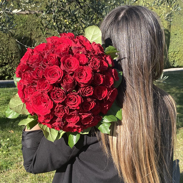 D’une qualité optimale, exclusivement sélectionnée pour vous, cette reine de beauté aux boutons écarlates débordant de fraîcheur se dévoilera doucement au fil des jours pour vous offrir, en apothéose, son éclatante plénitude. Capiteuse et luxuriante, cette brassée de 50 roses rouges est le symbole de l’Amour par excellence. La légende veut que la rose, blanche à l’origine, rougisse accidentellement quand Cupidon renversa son verre de vin sur elle. Un cadeau précieux et incomparable pour dire « je t’aime », éternellement.