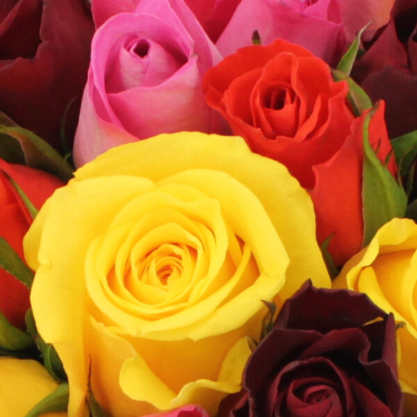 Si la rose est la reine des fleurs, cette belle brassée ne manque, certainement pas de noblesse. Parfaite en toutes circonstances, elle marquera les esprits et saura indiquer à son destinataire combien vous l'estimez et l'aimez. Des roses multicolores pour toutes les occasions, toutes les relations et pour l'amour, tout simplement !