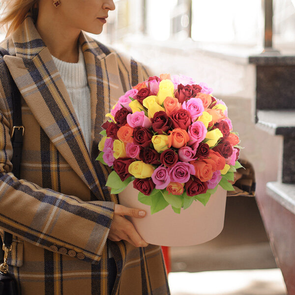 Bouquet de 80 roses multicolores.