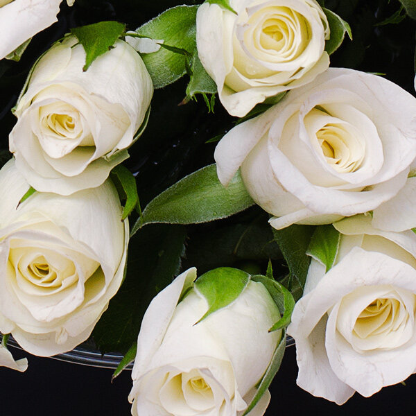Quoi de plus élégant que ce ravissant bouquet où les roses blanches se laissent enlacer par le lierre ? Cette création ne pourra que combler de joie celle ou celui qui aura la chance de se le voir offrir.
