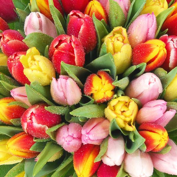 Bouquet de 40 tulipes multicolores (la couleur des tulipes varie en fonction de l'arrivage).