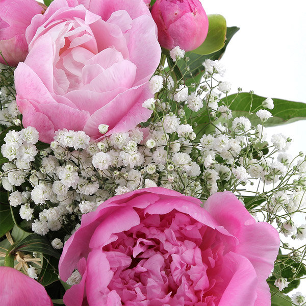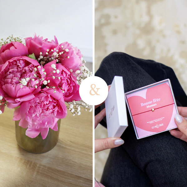 Offrir ce bouquet, c’est transmettre un souffle de tendresse, comme un murmure d’amour venu du jardin. Ses 7 généreuses pivoines dévoilent un camaïeu de roses poudrés, parfois tendres, parfois plus intenses, toujours sincères. Chacune s’ouvre lentement, comme un secret qu’on confie à voix basse. Le gypsophile y apporte sa légèreté, comme un nuage de douceur, une respiration délicate dans ce ballet de pétales. Et pour faire battre un peu plus fort les cœurs, un bijou discret accompagne ce bouquet : le bracelet Les Mots Doux, orné d’un petit cœur plaqué or, monté sur un cordon rouge d’amour. Un bouquet à offrir comme une promesse, un lien, une attention pleine de sens.