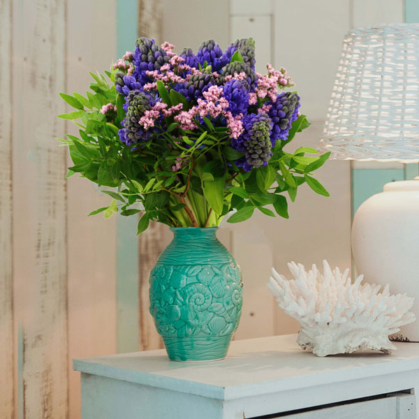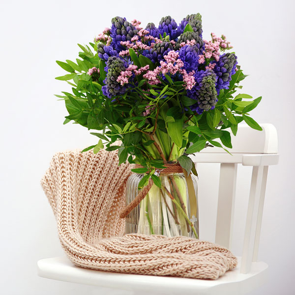 Qu'il est agréable de voir les jacinthes fleurir nos jardins. Pour profiter pleinement de ce petit bout de printemps, les artisans Florajet ont imaginé un bouquet remplit de douceur qui viendra apporter à votre intérieur un avant-gout d'été.