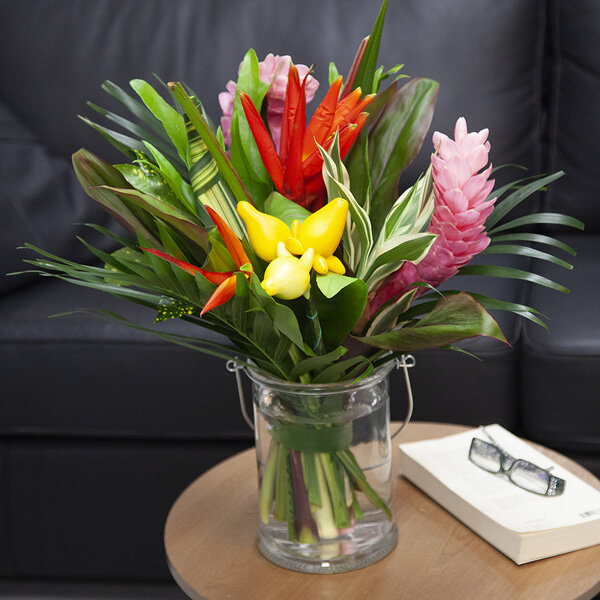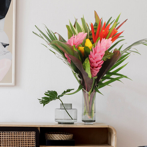 A y regarder dehors, le soleil n'est pas au rendez-vous. La pluie est à l'honneur et le moral est à l'image d'un paysage d'hiver. Et si vous mettiez un peu de couleur dans votre vie ? Optez pour notre bouquet exotique qui vous assure une virée au soleil, sans quitter votre intérieur ! En attendant les vacances d'été, souriez face à ce magnifique bouquet !