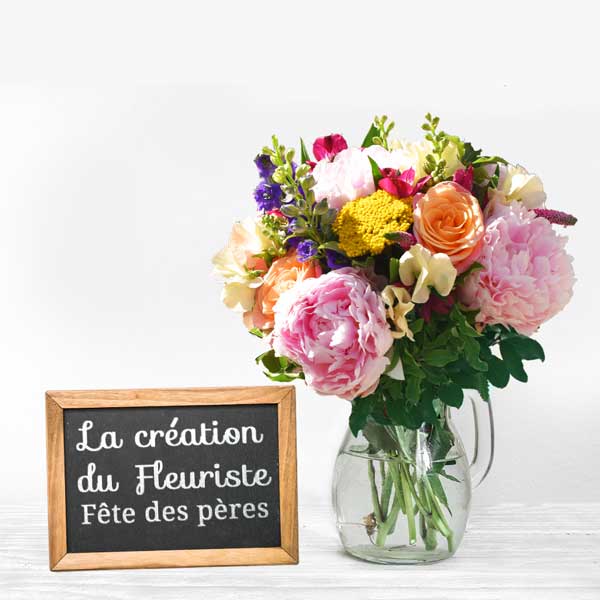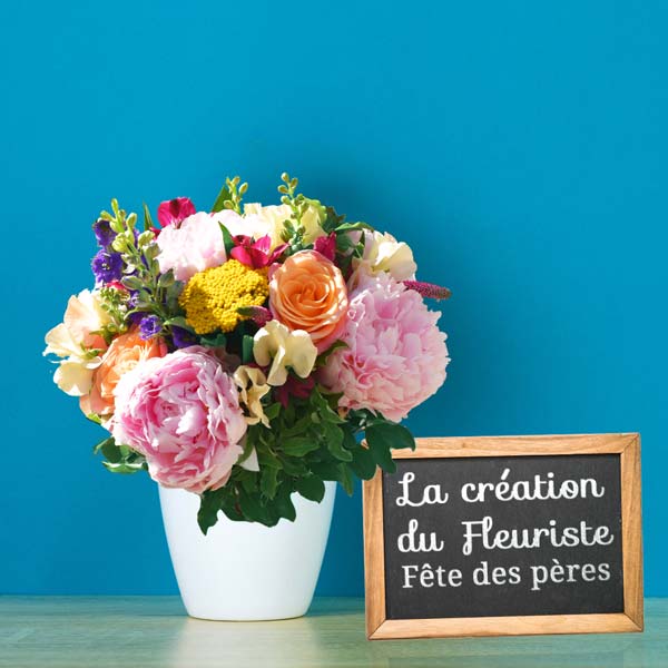 Création (bouquet ou composition florale) réalisée en fonction de la tendance du moment pour la fête des pères avec la touche artistique propre à l'artisan.