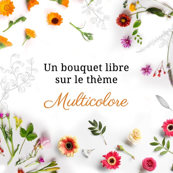 Votre artisan fleuriste réalisera une création multicolore en fonction de la touche artistique qui lui est propre, de la tendance du moment, et des fleurs à sa disposition selon la saison. Le visuel présenté est non contractuel.