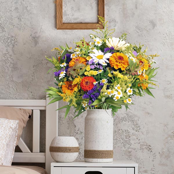 Pour ne pas oublier l'air chaleureux de vos dernières vacances ensoleillées, succombez à la fraîcheur de notre bouquet spécial rentrée. Le temps d'un instant, enivrant et revigorant, nos fleurs de saison vous transporterons un peu plus loin que le train-train quotidien.