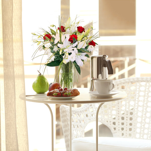 Votre arrangement floral Florajet, composé de fleurs fraîches, pourra être quelque peu différent du visuel présenté qui a valeur indicative. Votre composition, créée spécialement pour vous par un de nos artisans, est susceptible de varier légèrement en fonction de la sensibilité artistique du fleuriste mais aussi de la saisonnalité des fleurs qui la composent. L'esprit du bouquet, sa forme, ses couleurs ainsi que ses essences principales seront respectés par notre artisan fleuriste qui réalisera, à votre intention, cette création inédite quelques minutes avant de la livrer.