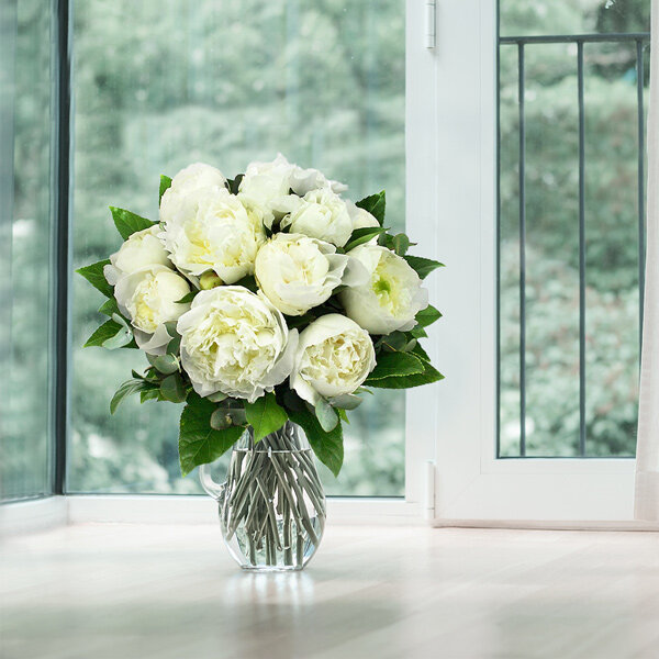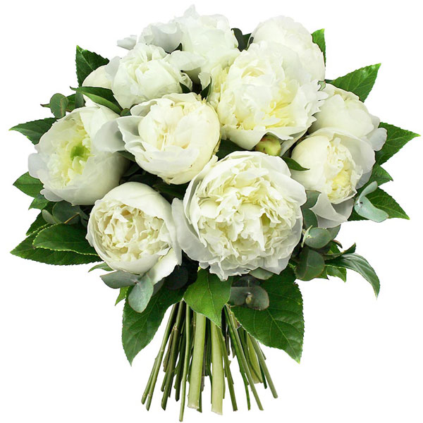 Bouquet de pivoines blanches avec feuillage (le nombre de pivoines varie en fonction du fleuriste et de la période).