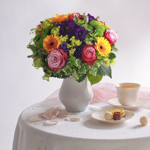 Votre arrangement floral Florajet, composé de fleurs fraîches, pourra être quelque peu différent du visuel présenté qui a valeur indicative. Votre composition, créée spécialement pour vous par un de nos artisans, est susceptible de varier légèrement en fonction de la sensibilité artistique du fleuriste mais aussi de la saisonnalité des fleurs qui la composent. L'esprit du bouquet, sa forme, ses couleurs ainsi que ses essences principales seront respectés par notre artisan fleuriste qui réalisera, à votre intention, cette création inédite quelques minutes avant de la livrer.