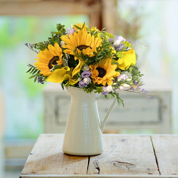 C'est enfin l'été chez Florajet ! Succombez à notre bouquet inédit, Piana. A l'image d'un village corse en été, notre brassée de saison vous réchauffera de toutes ses fleurs pour un moment de détente tant espéré. La beauté de Piana découle des tournesols, des callas, le tout accompagné du talent de l'artisan fleuriste qui réalisera avec passion votre magnifique bouquet.