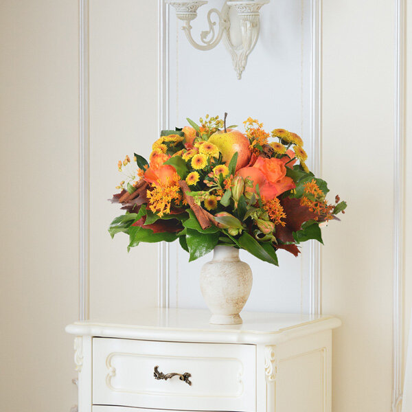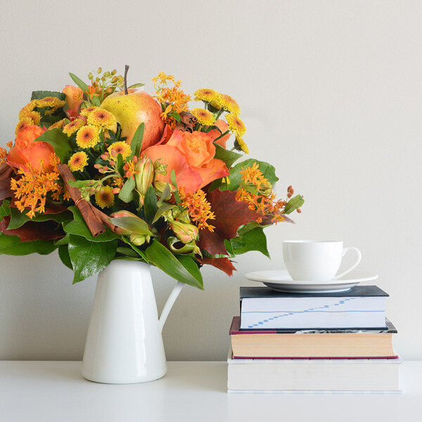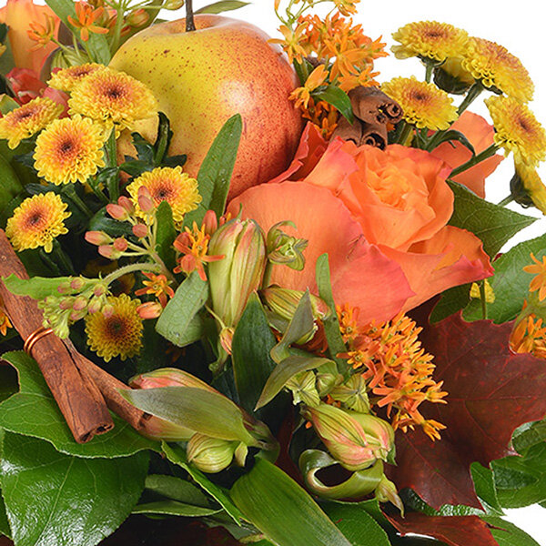 La version gourmande de l'automne existe-t-elle ? Assurément avec ce magnifique bouquet rond où le délicieux mélange pomme/cannelle est mis en scène au milieu des couleurs de l'automne !