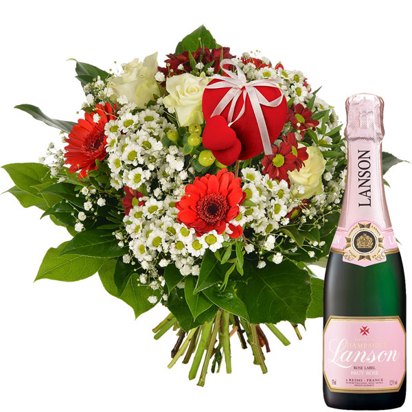 Une demie bouteille de champagne Lanson rosé vient parfaire ce cadeau de Saint Valentin.