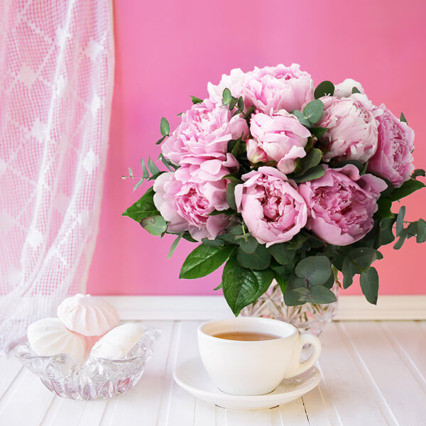 La pivoine rose est la plus romantique de toutes les couleurs. Fleur idéale pour représenter des idées et des valeurs comme le bien-être et la richesse. Le bouquet de pivoines est le cadeau idéal pour la fête des