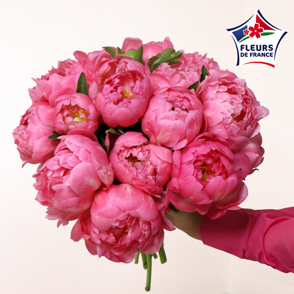 Bouquet de 20 pivoines françaises, camaïeu de roses (la couleur des pivoines peut varier en fonction des arrivages).