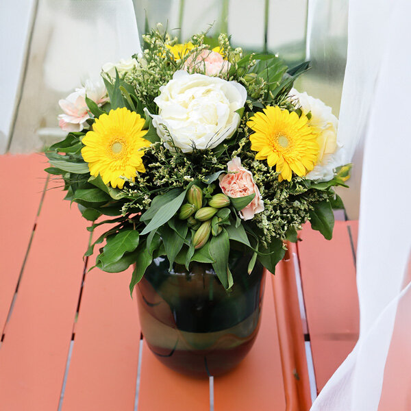 Comme son nom l’indique, ce joli bouquet se distingue par son audace. Ses couleurs ensoleillées volent la vedette à tous les autres. Chaque tige semble capturer un rayon de soleil, pour un rendu aussi vibrant qu’élégant. Audace ne passe pas inaperçu : il attire les regards, réchauffe les cœurs et apporte une touche de lumière à chaque espace.
