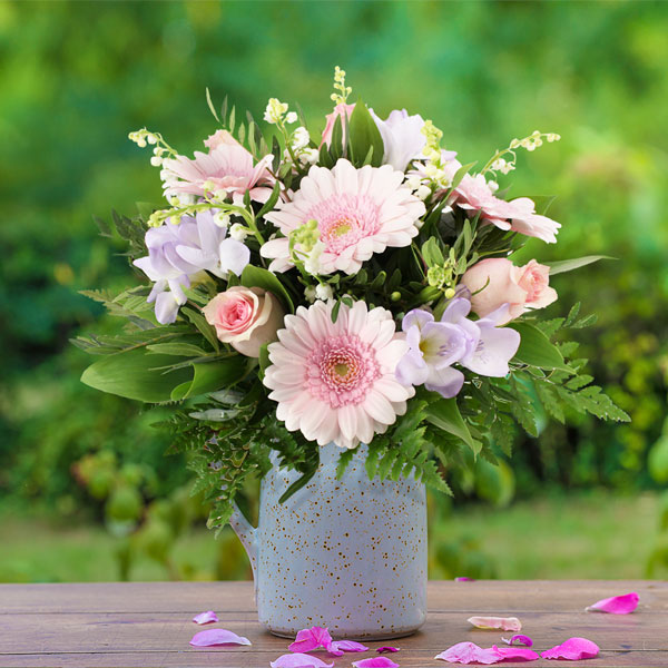 Votre arrangement floral Florajet, composé de fleurs fraîches, pourra être quelque peu différent du visuel présenté qui a valeur indicative. Votre composition, créée spécialement pour vous par un de nos artisans, est susceptible de varier légèrement en fonction de la sensibilité artistique du fleuriste mais aussi de la saisonnalité des fleurs qui la composent. L'esprit du bouquet, sa forme, ses couleurs ainsi que ses essences principales seront respectés par notre artisan fleuriste qui réalisera, à votre intention, cette création inédite quelques minutes avant de la livrer.