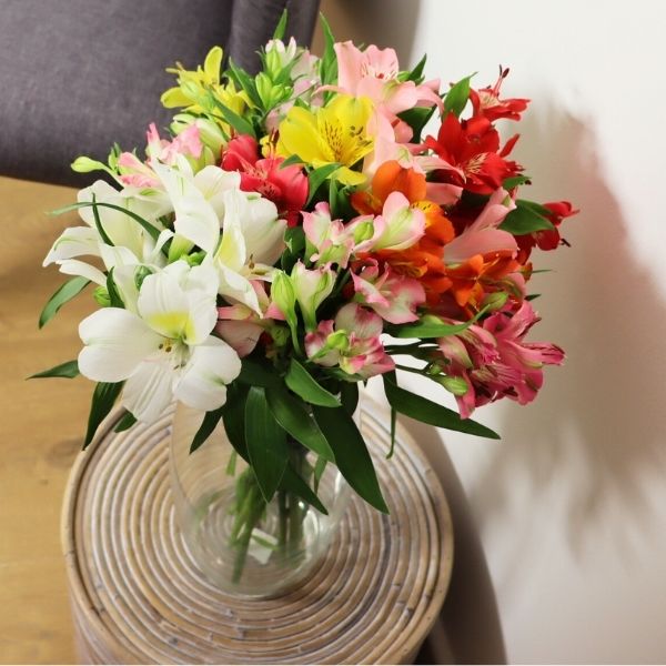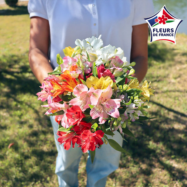 Bouquet de fleurs françaises composé de 10 alstroemerias multicolores.