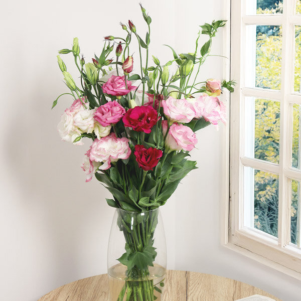 Le lisianthus reste l'une des fleurs les plus raffinées de nos jardins français, avec ses pétales délicats qui évoquent la soie froissée et cette grâce naturelle qui attire immédiatement le regard. Ce bouquet rassemble dix lisianthus cultivés en France, déclinés dans un camaïeu de roses qui va des teintes poudrées aux nuances plus soutenues. Leur douces teintes suffit à transformer l'atmosphère d'une pièce, elles diffusent cette douceur qui invite à ralentir et à savourer l'instant présent. Cultivé localement par des horticulteurs engagés, notre gamme de fleurs françaises permet de soutenir une filière responsable. Ce bouquet trouve naturellement sa place sur votre table, votre bureau ou votre commode, là où vous avez besoin de cette touche de gaieté qui fait du bien au moral. Parfois, s'offrir des fleurs représente le plus beau des cadeaux qu'on puisse se faire, celui qui nous rappelle de prendre soin de nous.