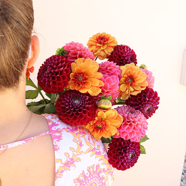 Le dahlia, fleur originaire du Mexique et d'Amérique centrale aux pétales voluptueux parfaitement organisés, séduit par ses couleurs éclatantes et sa symbolique riche : les dahlias roses incarnent la grâce, les oranges l'énergie, tandis que les violets expriment un amour durable. Cette fleur ornementale héritière de la tradition aztèque transforme chaque bouquet en véritable déclaration d'amour et de reconnaissance. Pour conserver vos dahlias plus longtemps, coupez les tiges en biseau sous l'eau froide et changez l'eau tous les deux jours. Placez votre bouquet de dahlias dans un endroit frais à l'abri du soleil direct pour profiter de ces fleurs généreuses pendant une semaine. Avec ces soins attentionnés, ces magnifiques fleurs colorées sublimeront votre intérieur d'un écrin de beauté naturelle.