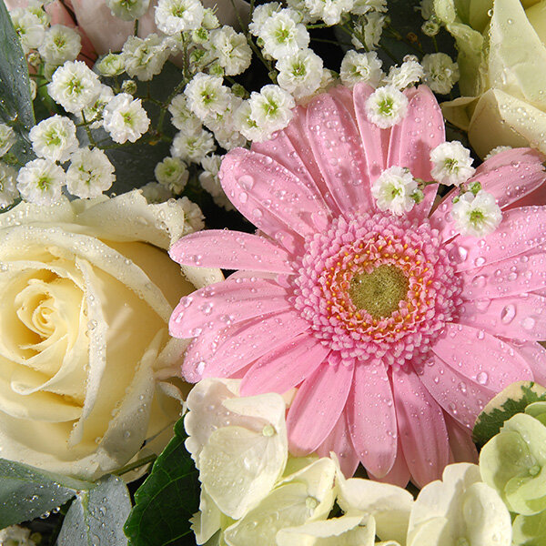 Votre arrangement floral Florajet, composé de fleurs fraîches, pourra être quelque peu différent du visuel présenté qui a valeur indicative. Votre composition, créée spécialement pour vous par un de nos artisans, est susceptible de varier légèrement en fonction de la sensibilité artistique du fleuriste mais aussi de la saisonnalité des fleurs qui la composent. L'esprit du bouquet, sa forme, ses couleurs ainsi que ses essences principales seront respectés par notre artisan fleuriste qui réalisera, à votre intention, cette création inédite quelques minutes avant de la livrer.