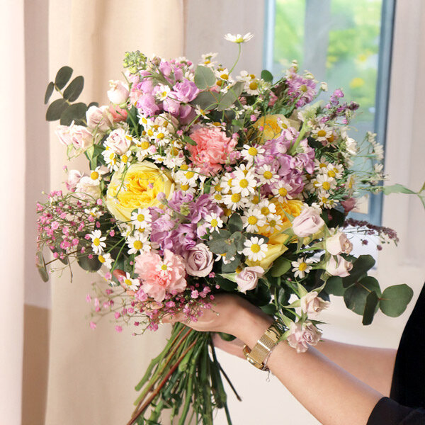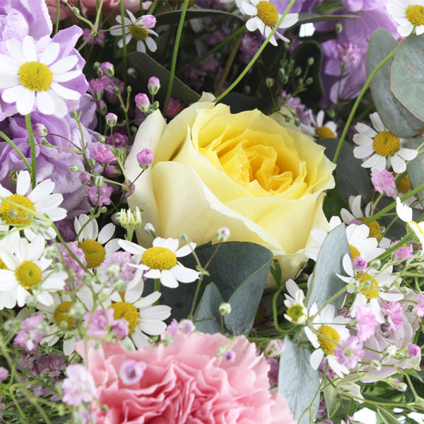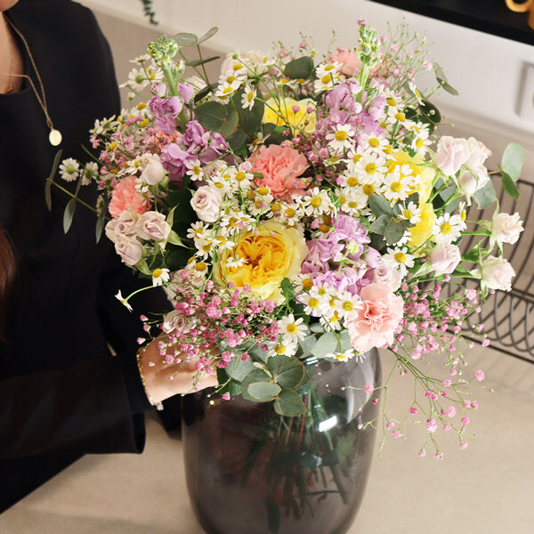 Plongez dans un jardin enchanteur avec notre bouquet Clea L, une composition généreuse mêlant œillets, roses David, giroflées et fleurs de saison. Ce bouquet champêtre aux tons pastel forme un véritable tableau floral, à la fois doux et majestueux. Idéal pour célébrer les beaux jours, il apportera charme et fraîcheur à votre intérieur. Offrez-le à l’occasion d’un anniversaire printanier, d’une fête des mères ou simplement pour faire plaisir à l’arrivée des beaux jours. Un cadeau élégant et plein de tendresse, à faire livrer en toute simplicité.