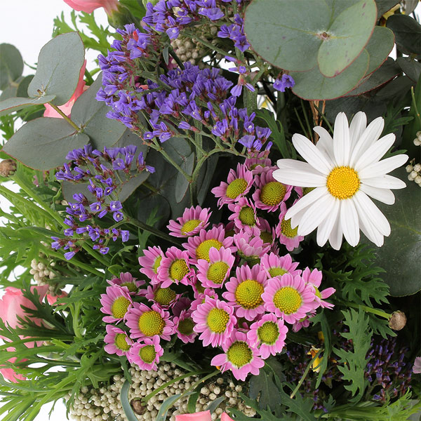 À l'image de la douceur printanière, notre bouquet de fleurs Daisy vous offre une douce brise florale lui concède une place de choix dans la collection des fleurs fête des grands-mères . Les fleurettes champêtres aux tons pastel s'harmonisent avec légèreté, créant une danse florale empreinte de simplicité et de charme. L'eucalyptus, par sa fragrance subtile, ajoute une touche délicate, enveloppant le bouquet d'une atmosphère apaisante. Cette brassée champêtre accompagnera toutes vos occasions, tel un présent intemporel.
