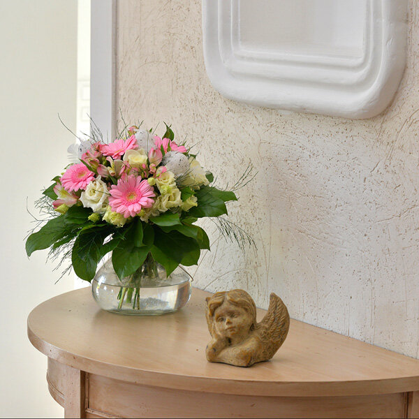 Tendre bouquet composé de germinis, de lisianthus et autres fleurettes de saison, se dévoile aujourd’hui à travers sa palette de couleurs pastels, ses fleurs délicatement parfumées et sa prestance florale délicieuse qui s'adaptera à votre intérieur sans hésiter. En cette période festive, faites vous plaisir avec ce bouquet douce surprise.