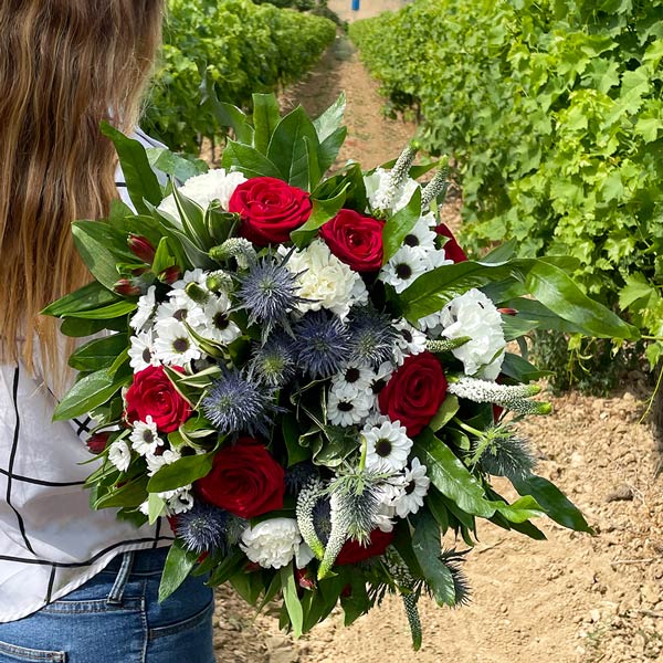 Aussi pétillant que les vacances d'été, notre bouquet de fleurs Fizzy est prêt à être adopté. Un mélange de rouge et de bleu qui vient habiller nos tendres fleurs de saison pour un concentré de fraîcheur tant apprécié pour l'été. A l'image de nos paysages champêtres, cette belle brassée saura venir réchauffer votre intérieur mais également le cœur de son destinataire.