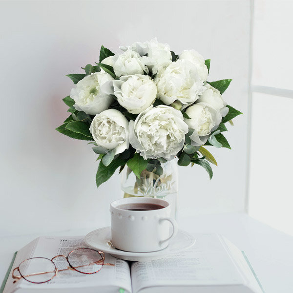La beauté florale dans tous ses sens avec cette magnifique brassée de pivoines blanches. Cette généreuse fleur est l’emblème officiel de la Chine. Son nom chinois signifie avec justesse « la plus belle ». Pour tous ces instants de bonheur qui rythment la vie, optez pour un tendre présent qui s'offrira délicatement et sans prétention au destinataire de votre coeur.