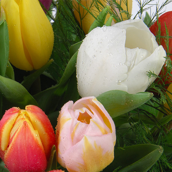 Qui a dit que les couleurs n'existaient pas en hiver ? Probablement celui qui n'a jamais croisé le chemin d'un parterre de tulipes ! L'une des plus belles fleurs de la saison froide s'offre à vous sous forme de brassée multicolores pour vous offrir un voyage floral coloré aux allures d'été ! Le petit plus ? Rainbow sera idéal pour une livraison fleurs fête des grands mères pour le plus grand bonheur de nos ainées !