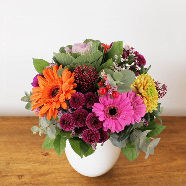 Votre arrangement floral Florajet, composé de fleurs fraîches, pourra être quelque peu différent du visuel présenté qui a valeur indicative. Votre composition, créée spécialement pour vous par un de nos artisans, est susceptible de varier légèrement en fonction de la sensibilité artistique du fleuriste mais aussi de la saisonnalité des fleurs qui la composent. L'esprit du bouquet, sa forme, ses couleurs ainsi que ses essences principales seront respectés par notre artisan fleuriste qui réalisera, à votre intention, cette création inédite quelques minutes avant de la livrer.