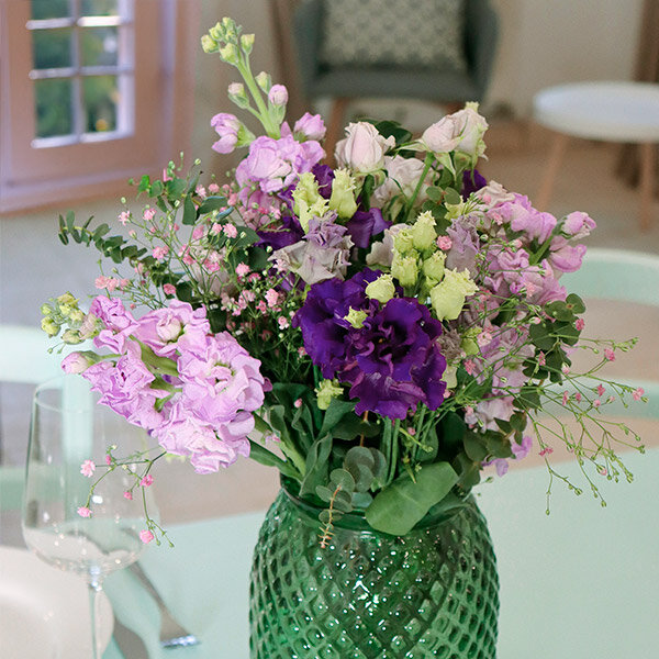 Faites entrer le printemps chez vous avec notre bouquet Zephir ! Ce bouquet tout en hauteur marie avec élégance lisianthus, giroflées et roses Silver, dans un mélange raffiné de fleurs fines. Ses teintes fraîches parme, violette et verte, insufflent une atmosphère printanière et lumineuse à chaque intérieur. Idéal pour fêter le retour des beaux jours ou offrir un moment de douceur, il séduit par sa composition aérienne et pleine de charme. Grâce à Florajet, faites livrer ce bouquet d’exception à l’adresse de votre choix pour une surprise qui ne manquera pas d’émotion.