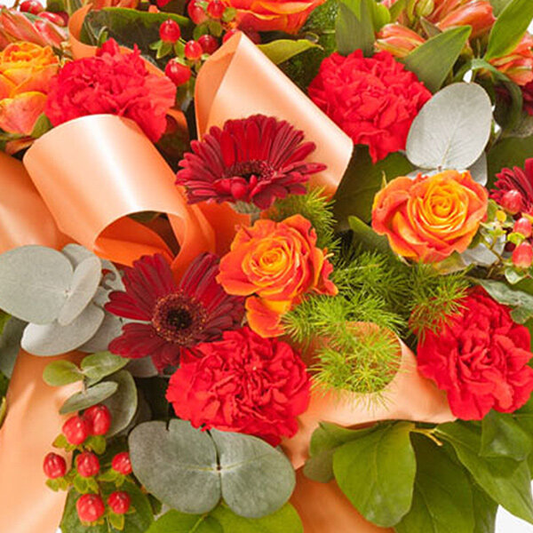 Cette magnifique brassée de fleurs explose de couleurs pour une expression ardente de votre affection et de votre compassion. Somptueux mélange d’élégance et de simplicité ce beau bouquet rendra hommage au défunt et dira toute votre compassion à ses proches.