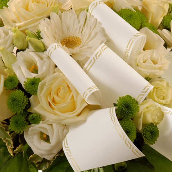 Toute en délicatesse, cette somptueuse composition florale d'une grande sobriété est symbole de pureté et de consolation.Vous souhaitez exprimer vos condoléances les plus sincères, mais ne trouvez pas les mots ? Consultez nos contenus dédiés aux messages d'accompagnement pour fleurs de deuil.