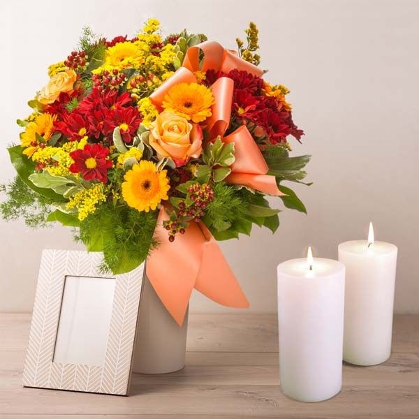 Cette brassée de fleurs aux tons vifs saura exprimer affection et regrets. Fulgurant hommage au défunt, ce beau bouquet portera avec force, toute votre compassion aux proches du disparu. Nos artisans fleuristes ont réalisé ce bouquet afin de vous permettre d'apporter vos sentiments les plus sincères durant cette période délicate de recueillement.Vous ne savez pas quel texte de condoléances associer à votre bouquet "Doux Sentiments" ? Retrouvez tous nos exemples de textes de condoléances.