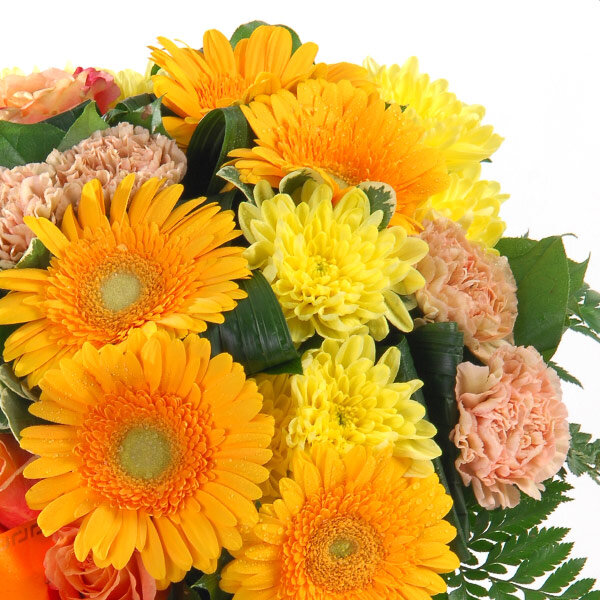 Le bouquet OR PUR est une composition lumineuse dans les tons orange et jaune, pensée pour apporter chaleur et réconfort lors des moments de deuil. Réalisé avec des chrysanthèmes, gerberas et roses, il exprime à la fois la tendresse et la vitalité d’un dernier hommage. Orné de feuillage et d’un ruban de deuil décoratif, ce bouquet trouve toute sa place lors d’une cérémonie ou pour fleurir une tombe avec dignité. Grâce à la livraison sur tombe, il permet d’honorer la mémoire d’un proche, même à distance, avec une attention sincère et respectueuse.
