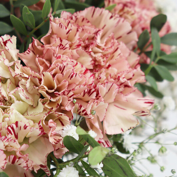 Symbolisant l'amour éternel et la pureté, l'œillet est une fleur traditionnelle pour exprimer le respect et rendre hommage aux défunts. Ce bouquet Oracle sera adéquat pour les enterrements ou la Toussaint, offrant un hommage délicat et sincère. La présence du gypsophile ajoute une touche de légèreté et d'espoir en ces moments de recueillement.