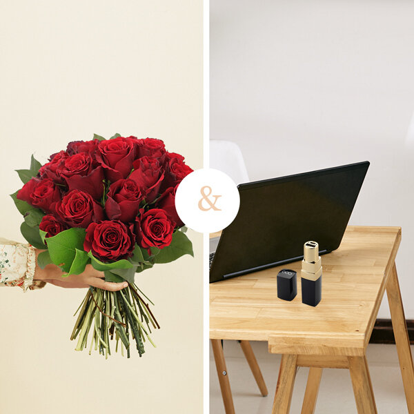 Vous aimez gâter votre âme sœur ? Cette belle brassée de roses rouges à la symbolique passionnée est le présent idéal. Quant à lui signifier votre désir de rester en contact ; cette élégante batterie portative s’en charge.