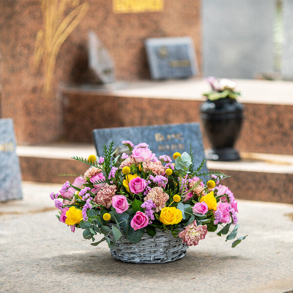 Lorsque le moment est venu de rendre hommage à un proche disparu, il n'est pas toujours facile de trouver le bon moyen de le faire. Si vous décidez de vous tourner vers les fleurs pour vous aider à transmettre vos sentiments à travers cette épreuve difficile, nos artisans fleuristes ont créé une composition florale élaborée avec des fleurs symboliques comme la rose et l'œillet, disposées harmonieusement dans un contenant adapté. Que ce soit pour une cérémonie ou lors de la Toussaint, notre composition florale apportera une touche de sérénité en ces moments de recueillement
