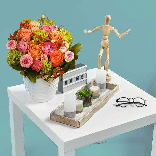 Votre arrangement floral Florajet, composé de fleurs fraîches, pourra être quelque peu différent du visuel présenté qui a valeur indicative. Votre composition, créée spécialement pour vous par un de nos artisans, est susceptible de varier légèrement en fonction de la sensibilité artistique du fleuriste mais aussi de la saisonnalité des fleurs qui la composent. L'esprit du bouquet, sa forme, ses couleurs ainsi que ses essences principales seront respectés par notre artisan fleuriste qui réalisera, à votre intention, cette création inédite quelques minutes avant de la livrer.