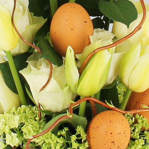 Les œufs présents au sein de cette création florale ne sont pas consommables !