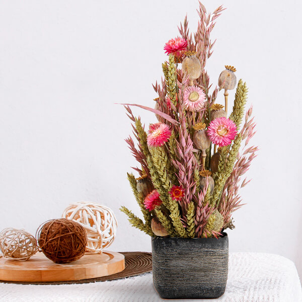 En y regardant de plus près, cette composition de fleurs séchées nous donne des envies de liberté. Laissez-vous emporter le temps d’un instant au travers de cette tendance bohème sans précédent. Découvrez cet ensemble harmonieux à adopter rapidement pour votre intérieur.